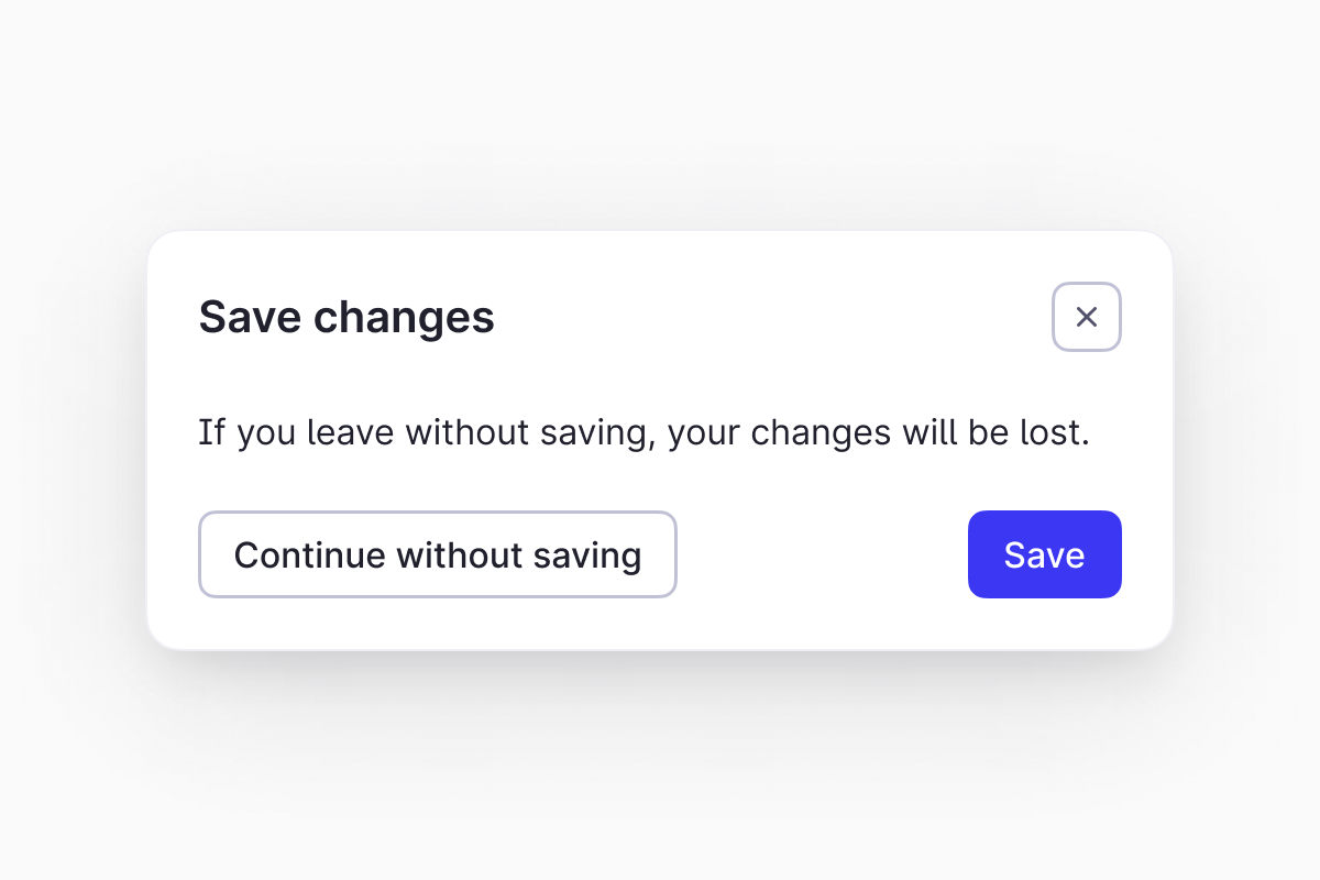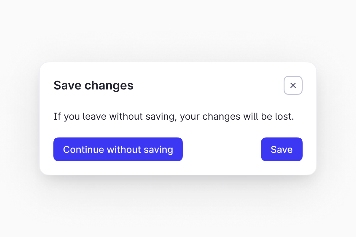 When paired with a Tertiary Button (for actions like canceling or going back), the Tertiary Button is typically aligned to the left. This is common in elements such as Side Panels, Dialogs, and Page Footers.