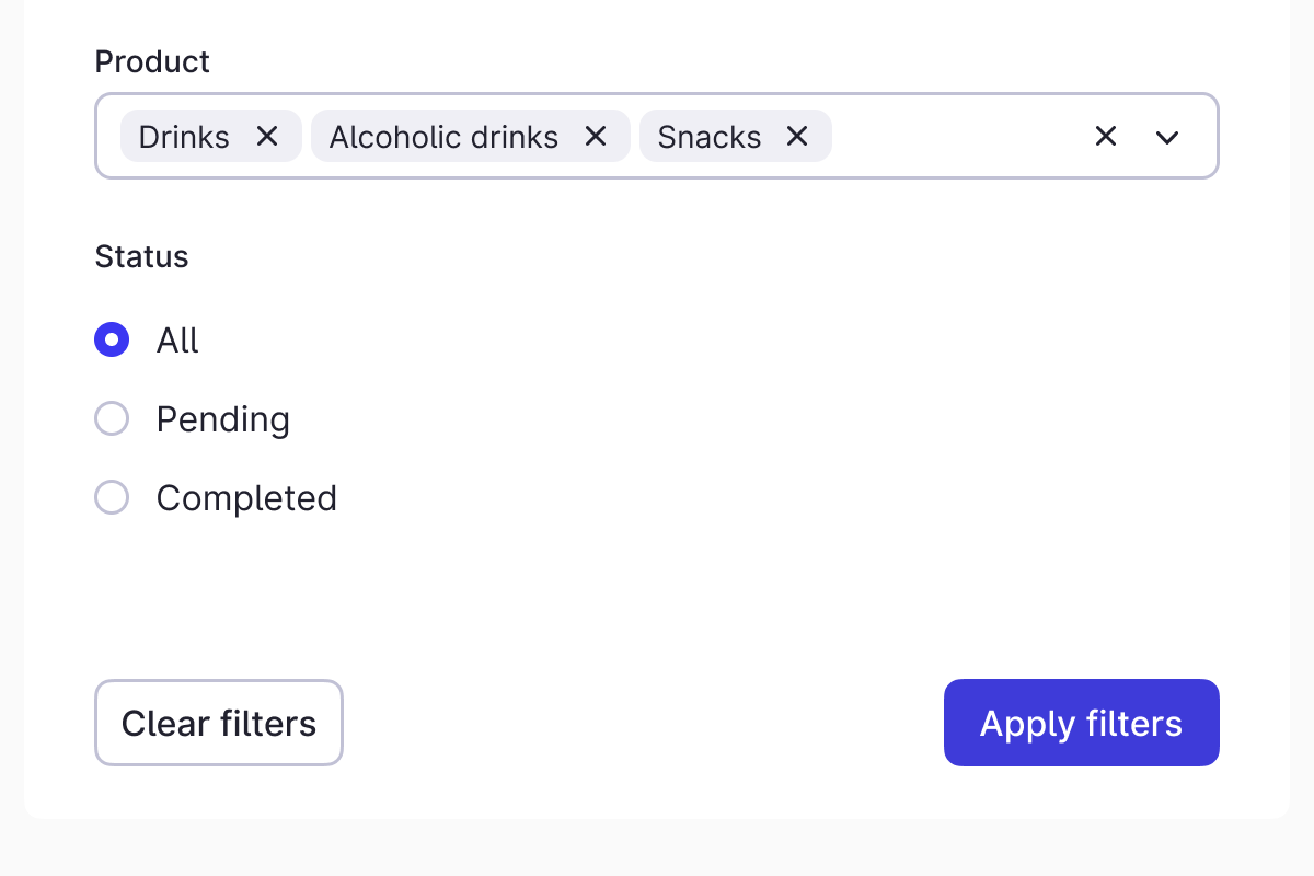 - Form controls: Do not use buttons to replace form fields, such as Select, Number Input, etc.