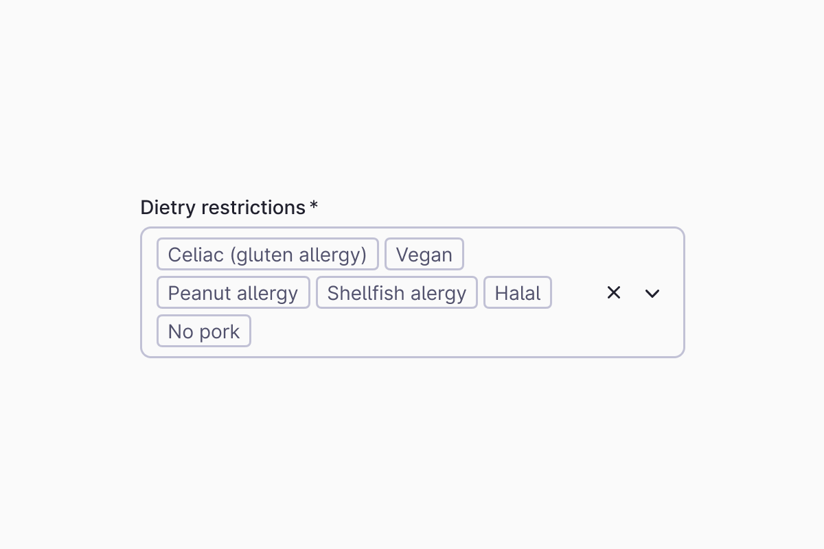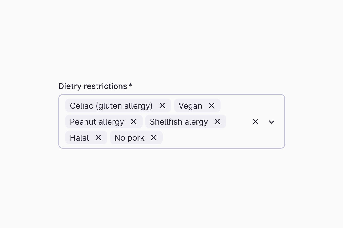- Forms: Chips represent selected options in forms, like in the Multiselect. Each selected item appears as a Chip, providing a clear summary of user choices.