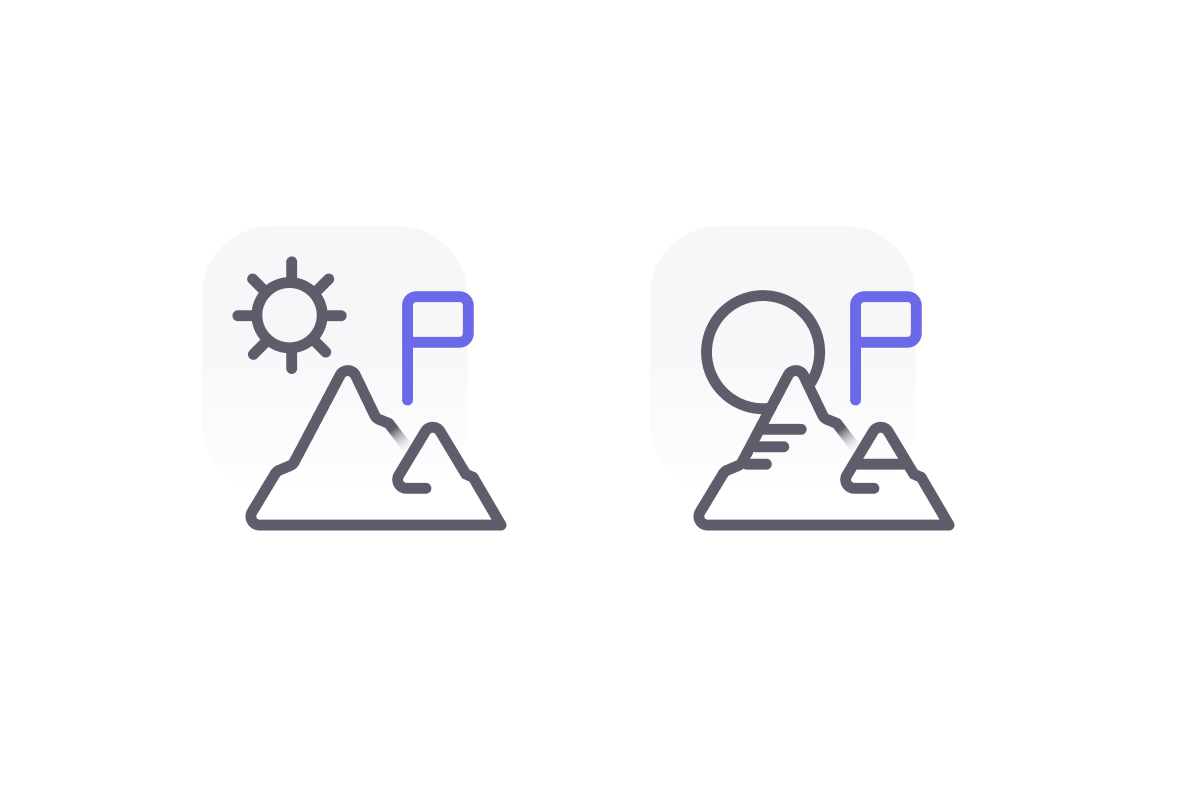 Gradients: The background square using a subtle gradient to the background enhances the composition's balance. It’s pretty useful for keep a good visual balance. The position of the square will depend on the pictogram itself, the designer should see which side works better for the composition. In the case of the pictograms with a size of 48px, this background square will be removed.