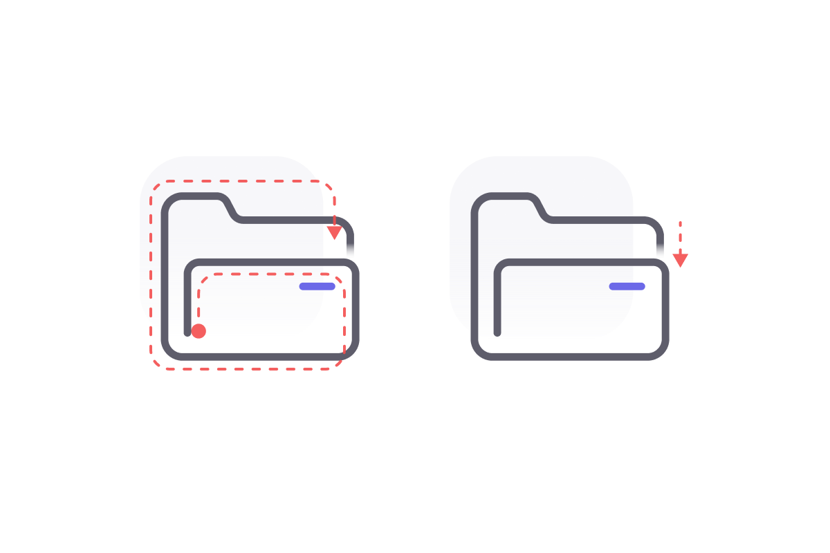 Details: It's crucial to have a safe area to ensure that pictograms don't exceed the boundaries of it and to make sure the balance and the consistency are working among every pictogram. For the pictograms, these are 7px for every side. Maintain a consistent stroke width of 2.5px.